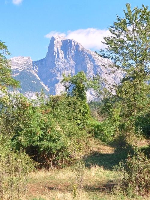 Auf dem pilzförmigen Tisch drei lokale Biere vor dem Fuß des Berges, und der Moment, an dem es wunderbar ist, alles. Der Arapi ist nicht beautiful, sondern wonderful, sagte Victor, unser Ansprechpartner, Fahrer, Vermieter, und der Unterschied ist wahr. Schroff, unwirtlich, ist er von vorne eine einzige Steilwand. Der Aufstieg rechts durch Bachläufe, Buchenwälder, zum gelb gefärbten Überhang, unter dem Esel im Schatten warten, und immer der Geruch von Feigen. Dann durch eine Schafherde, links der Vorgeschmack von Abgrund und mehr Höhenmeter, noch mehr und noch weiter Steinmännchen als Markierung, Gestein und Gestein und dazwischen raue Spalten. Kurz vorm Gipfel ist es sicher und direkt daneben Tiefe, Thrill, Höhenluft, und dann die albanische Flagge statt dem Kreuz. Oben freie Sicht, Sonne, unglaublich ist das, und die gleiche Steilwand, jetzt aus dieser Perspektive.